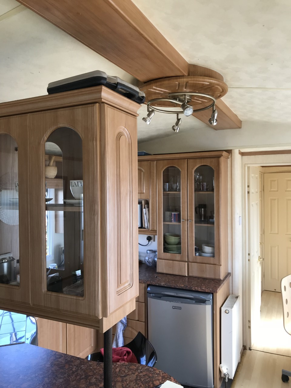 Extras included are: 2 new double beds, all contents i.e TV, Sky, DVD, arm chairs, large cabinet with lights in front room.